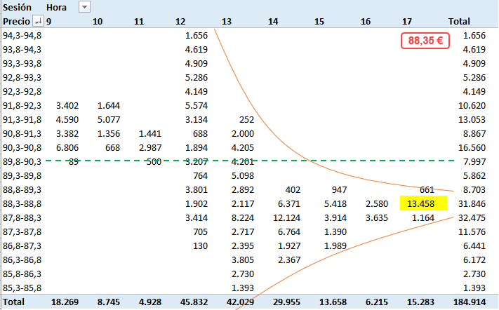 pues yo creo que esto ha sido pactado, solo hay que ver que desde las 3 de la tarde ha sido un martillo pilón a 88,5 - 88,35 constante con 184k de volumen y que no se mueva ni 1 euro.. No tengo dudas de quien ha salido ha ganado, pero tampoco de quien ha entrado que querrá ganar.. Para mí el precio de cierre de hoy es poner el contador a cero y ver cómo empieza a subir