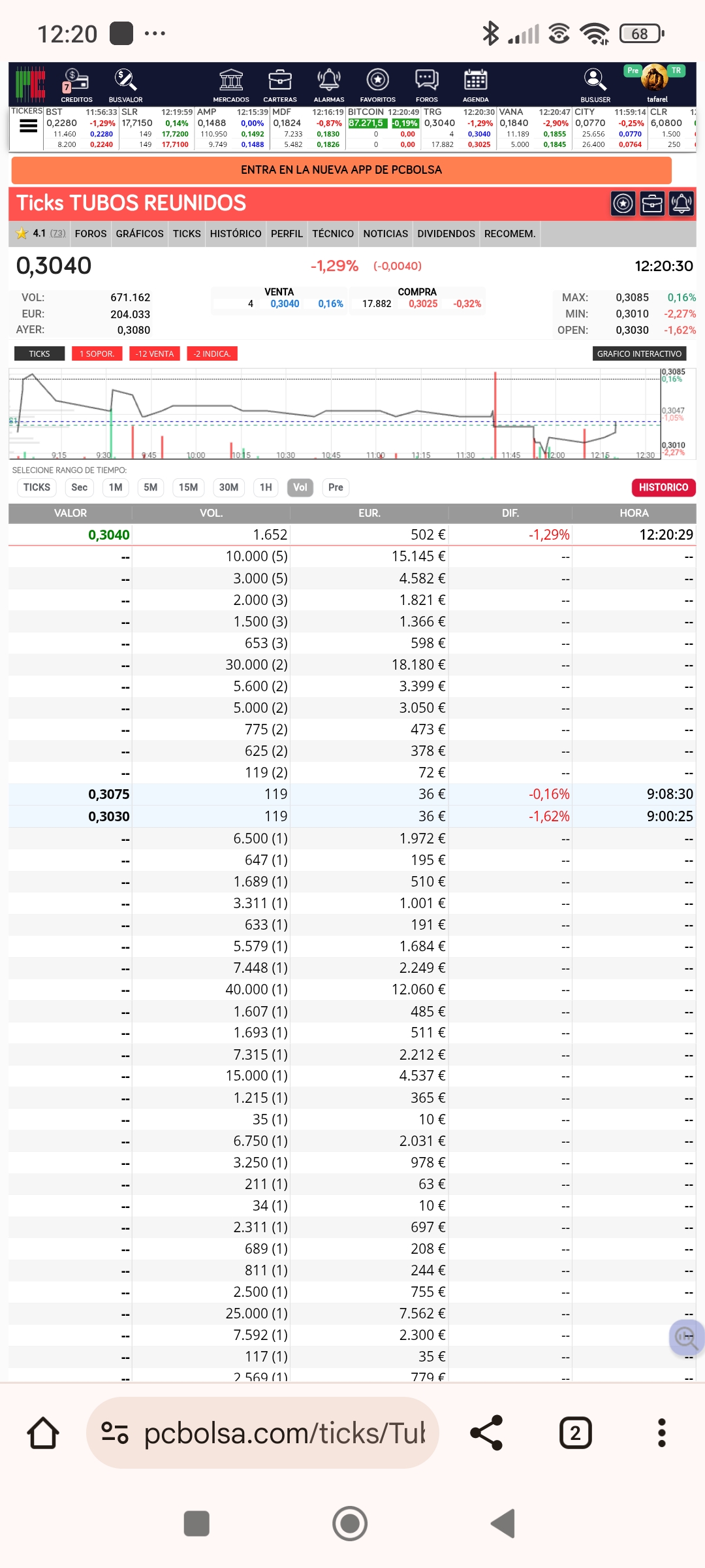 Hace bastantes años no recuerdo cuál, compré tubos prácticamente en mínimos y en dos sesiones subió un 100% no hubo retroceso