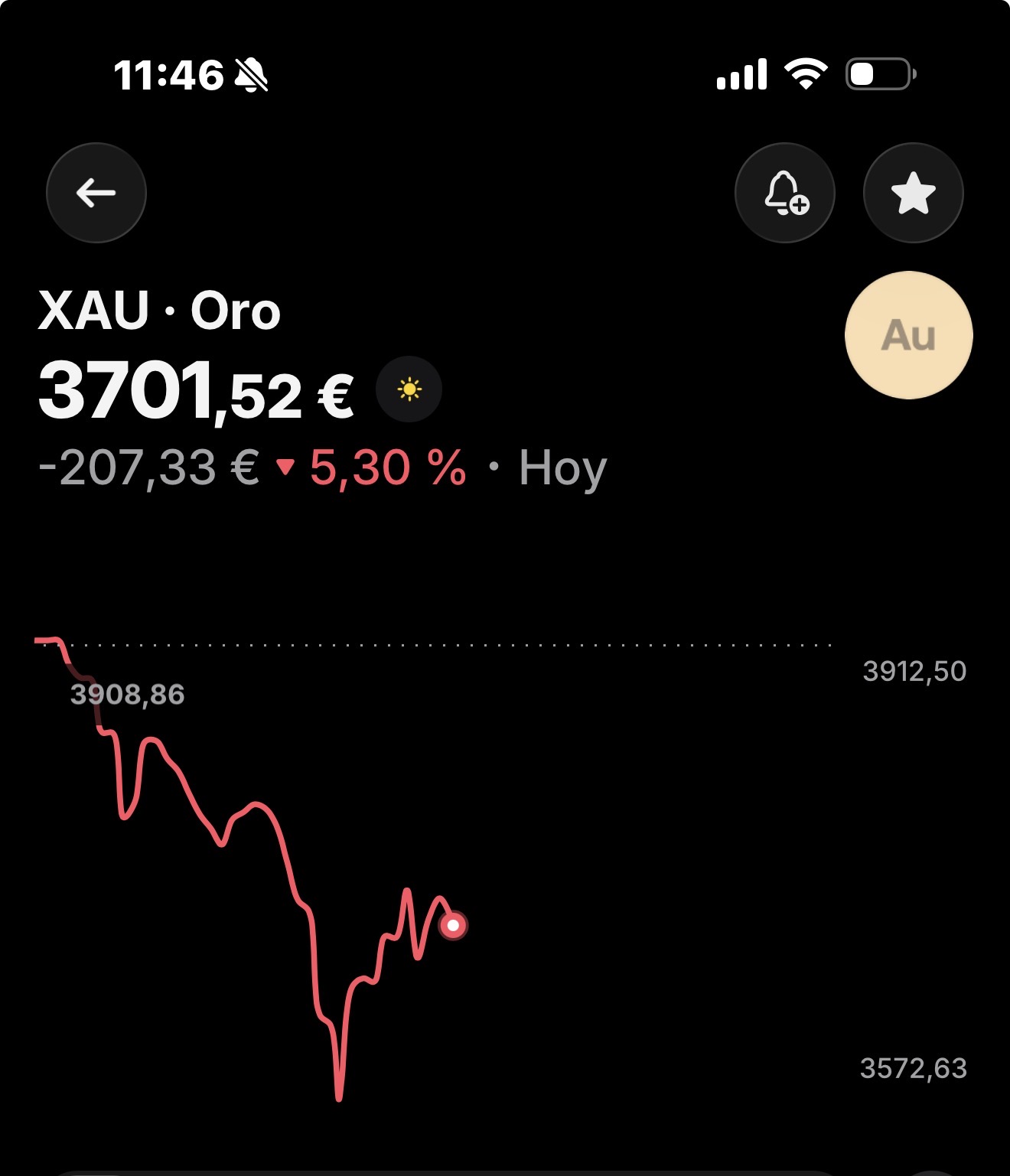 Precio del oro en picada