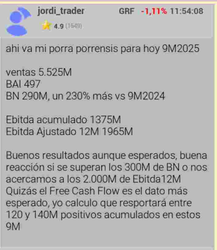 ahi va mi porra porrensis para hoy 9M2025 ventas 5.525M BAI 497 BN 290M, un 230% más vs 9M2024 Ebi..........