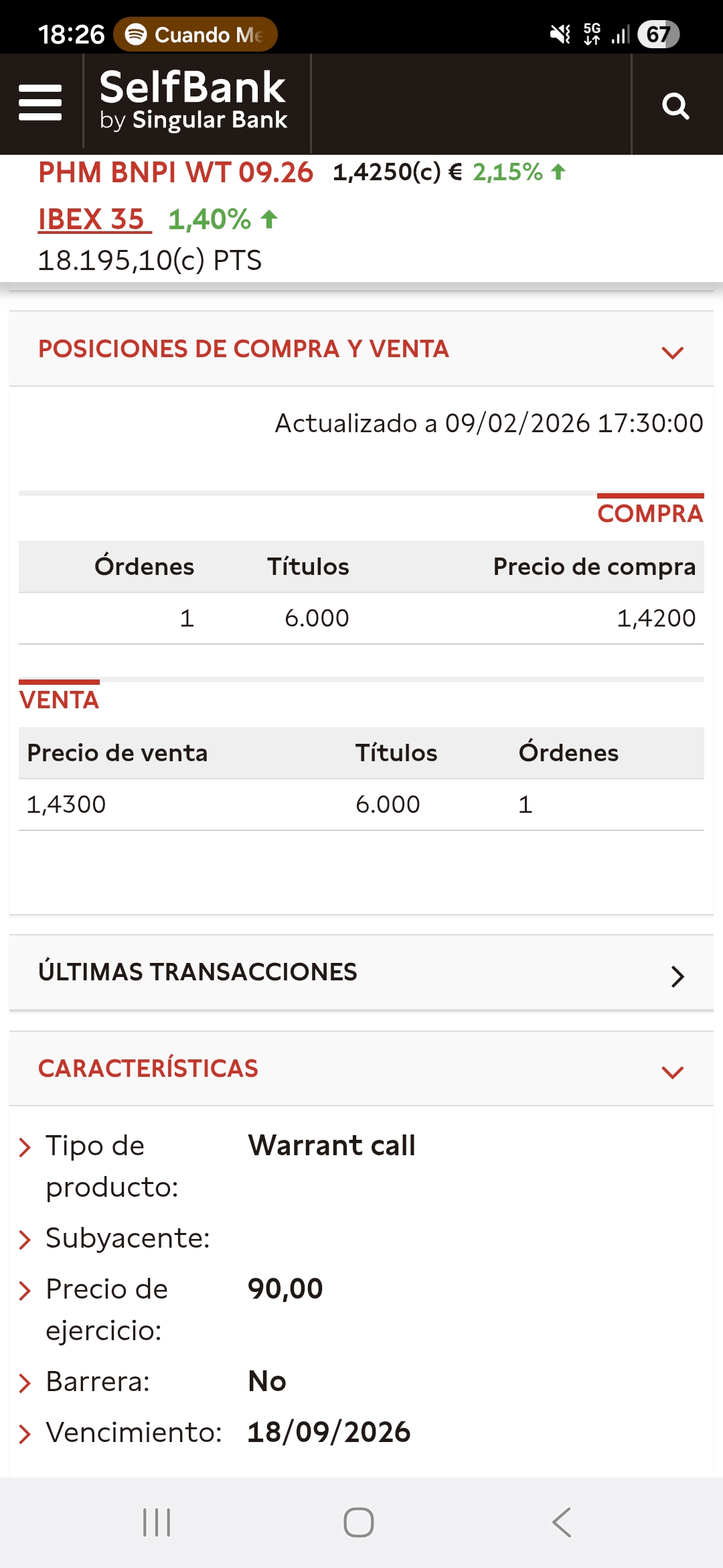 Aunque la acción todavía cotiza 10 céntimos por debajo de tu precio de entrada, el warrant ya vale un 4,40% más.