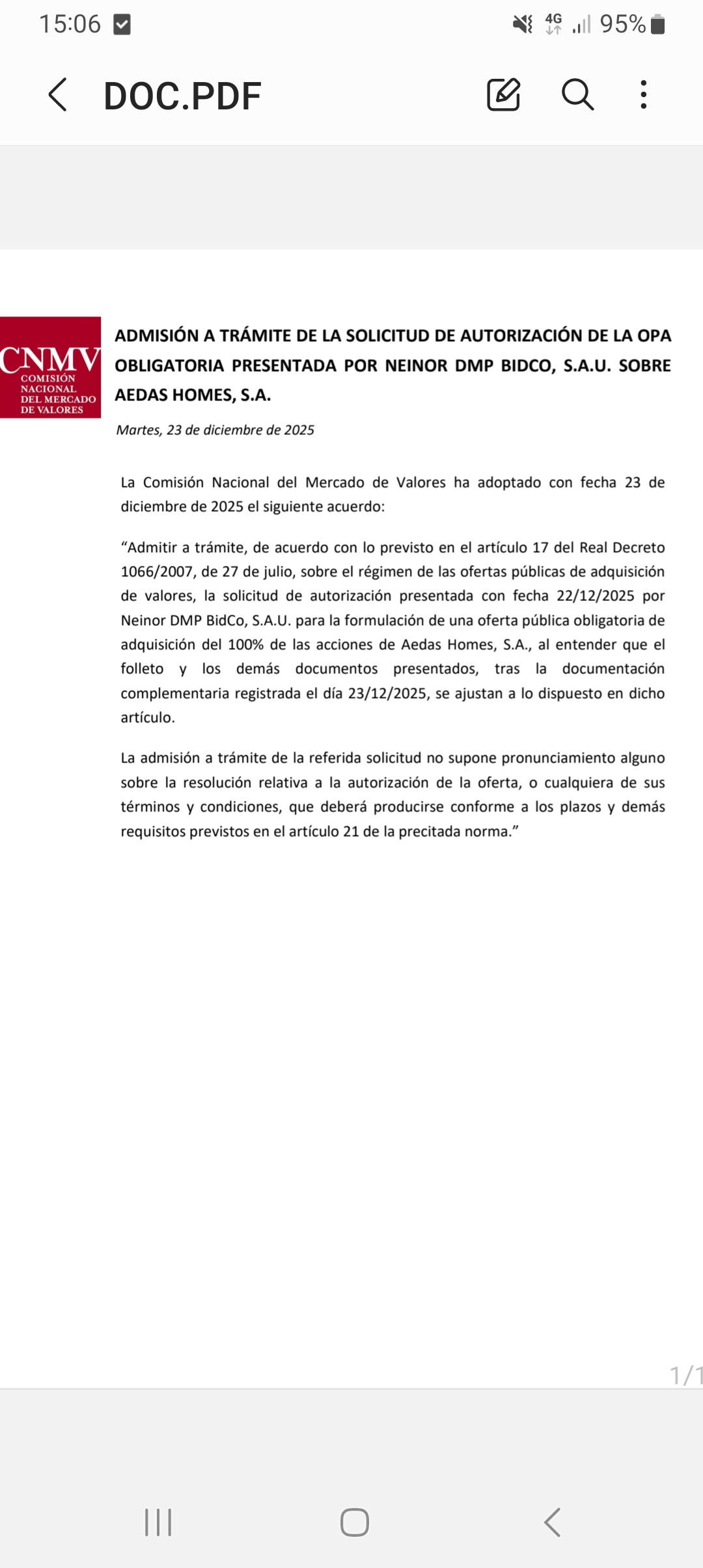Buenas tardes, cnmv acepta. Vía libre, aunque ya era sabido jeje
